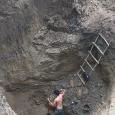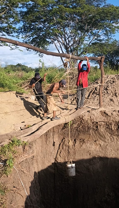 The digging, for the first few meters, went fairly smoothly. But the deeper they went, the denser the soil became, until it turned into a thick substrate of tacariguay (decaying granite), for which chisels and hammers had to be used. It was slow and tedious work in temperatures over 100° F. Then, at about 8 meters deep the substrate became so dense they had to rent a jackhammer.