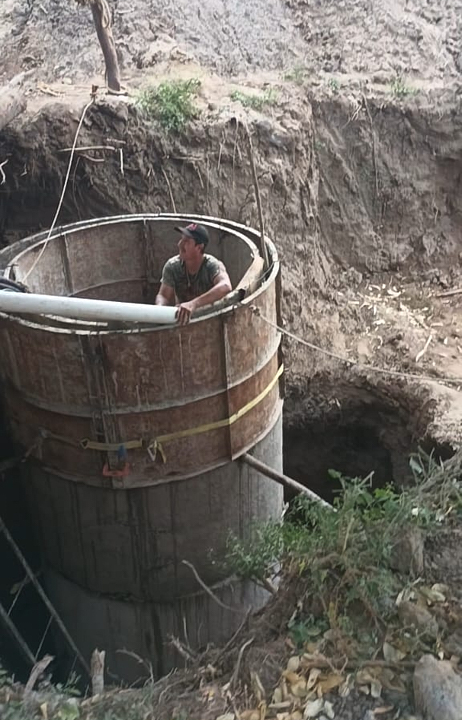 But presently, due to the rising temperatures and diminishing rainfall, the newcomers—and the whole village—face serious water shortage. The community well, from which water had been reliably pumped for decades into an elevated tank to supply most of the village, has now virtually run dry. To solve this, at least for the time being, Polo has organized his fellow villagers to dig a new larger, deeper well, with hopes it will keep on filling the community tank for a number of years. This project, however, has proved far more challenging than anticipated. The big new well—two meters across—had to be dug more than 15 meters deep in order to provide a steady supply of water.