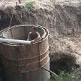 The digging was going well. But then they ran into an enormous rock more than a meter across, right in the middle of the hole. They tried to break it up with the jackhammer—until the it broke and they had to rent a bigger one. Then they had to haul the huge pieces of rock out with a long rope—a perilous task! Since about 5 meters (about 15 feet) deep, water had already begun to trickle into the hole. They had to steadily pump it out in order to keep digging.