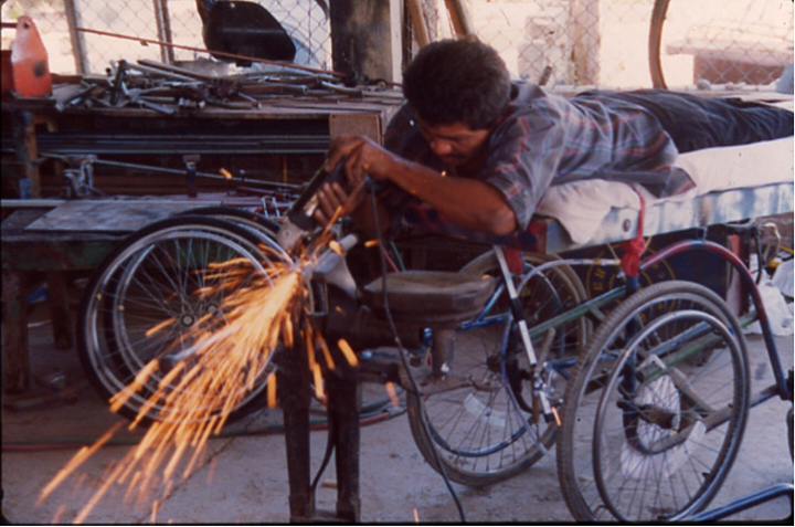 The PRÓJIMO Duranguito workshop, which specializes in making individually designed wheelchairs for children with challenging needs, has had its ups and downs. The team has been working on the design of a hand-powered battery-assisted tricycle, intended to help spinal cord injured persons get to work through urban traffic. The goal is to make the trikes cheap enough for users to afford. But the high quality model the team came up with proved too expensive, now that cheaper but inferior, less durable models are being imported from China. So the program is now back to square one.