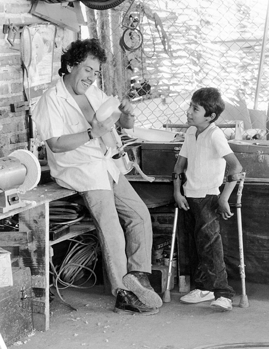And sometimes the benefits go full circle. An example is Nemías, a young amputee from Guatemala, who traveled all the way to PROJIMO to get a prosthetic leg. While having his prothesis made, and after, he received personal training in limb-making from Jon Batzdorff, a visiting master prosthetist from California, who heads an international training program called Prosthetica.